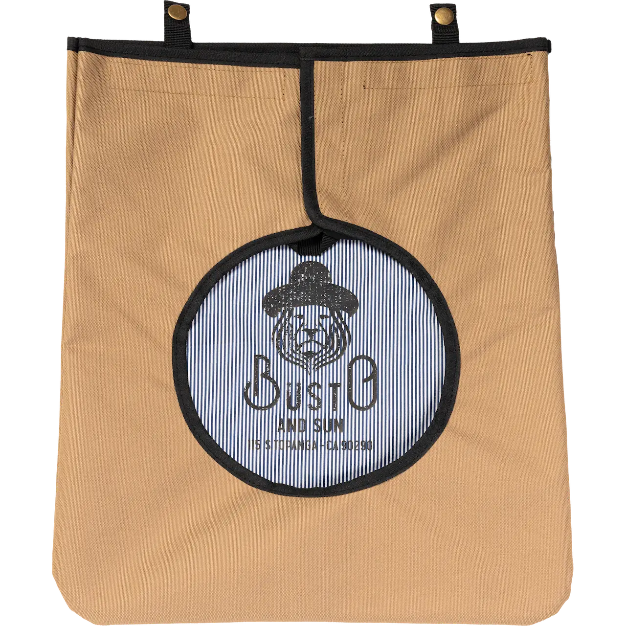 • Fodera interna a righe in misto cotone, stampa centrale “Busto & Sun”