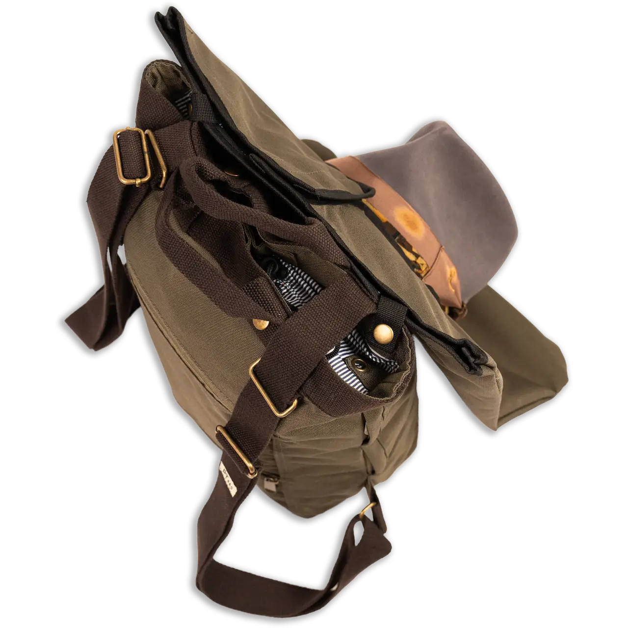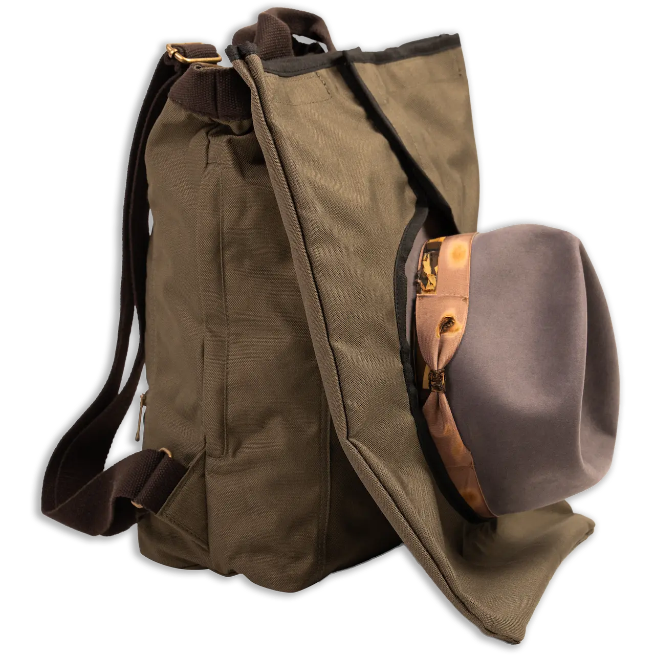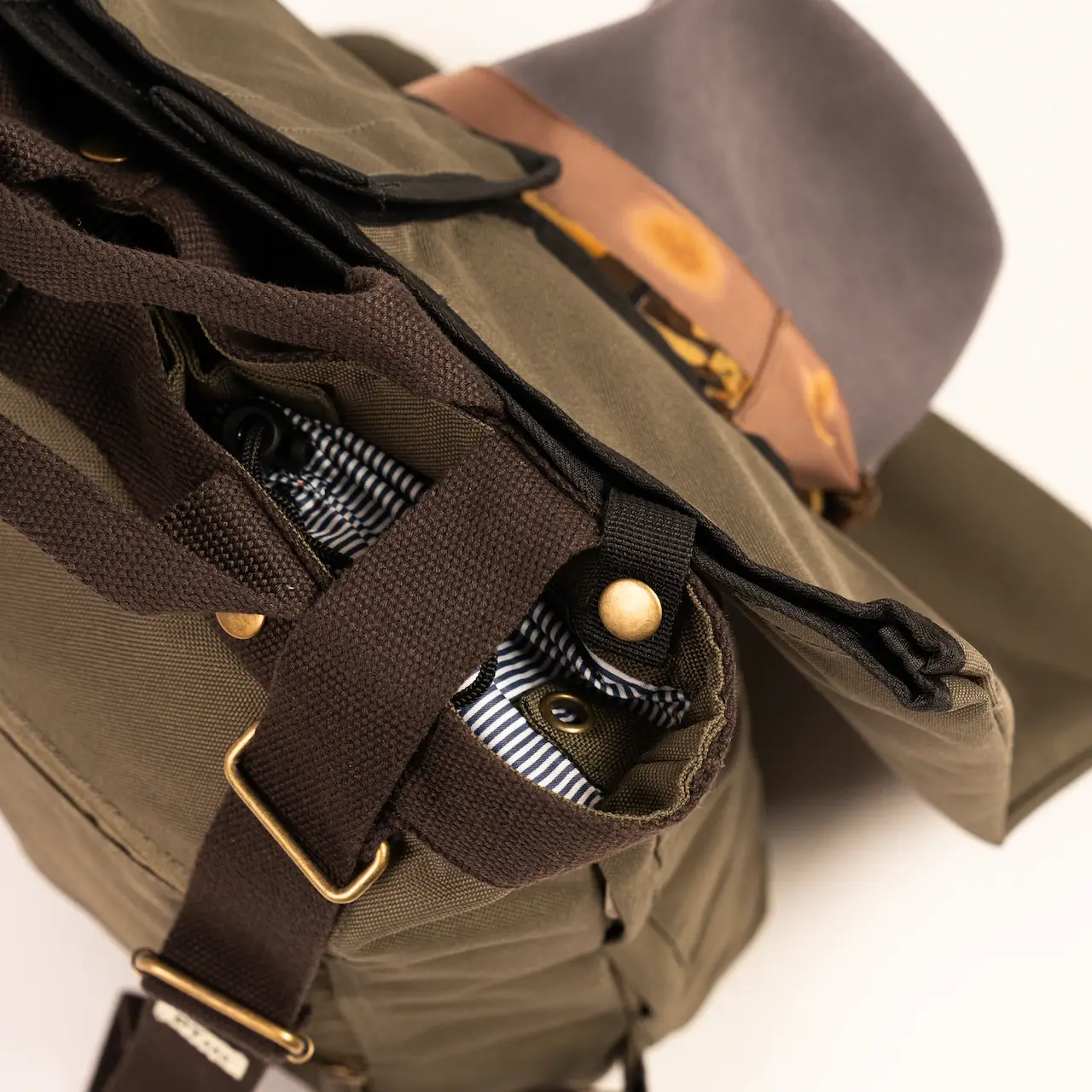 Il Porta Cappello Laguna riprende i riflessi sospesi fra terra e acqua in una nuance verde che richiama il fascino della laguna veneziana. Progettato per custodire con cura cappelli a tesa larga, il suo design essenziale e resistente risulta ideale per viaggi e spostamenti. Un tocco di stile deciso che fonde utilità e charme naturale in un unico, pratico oggetto, munito anche di una pratica maniglia per prenderlo e/o appenderlo quando non lo usi con la tua PTBag.