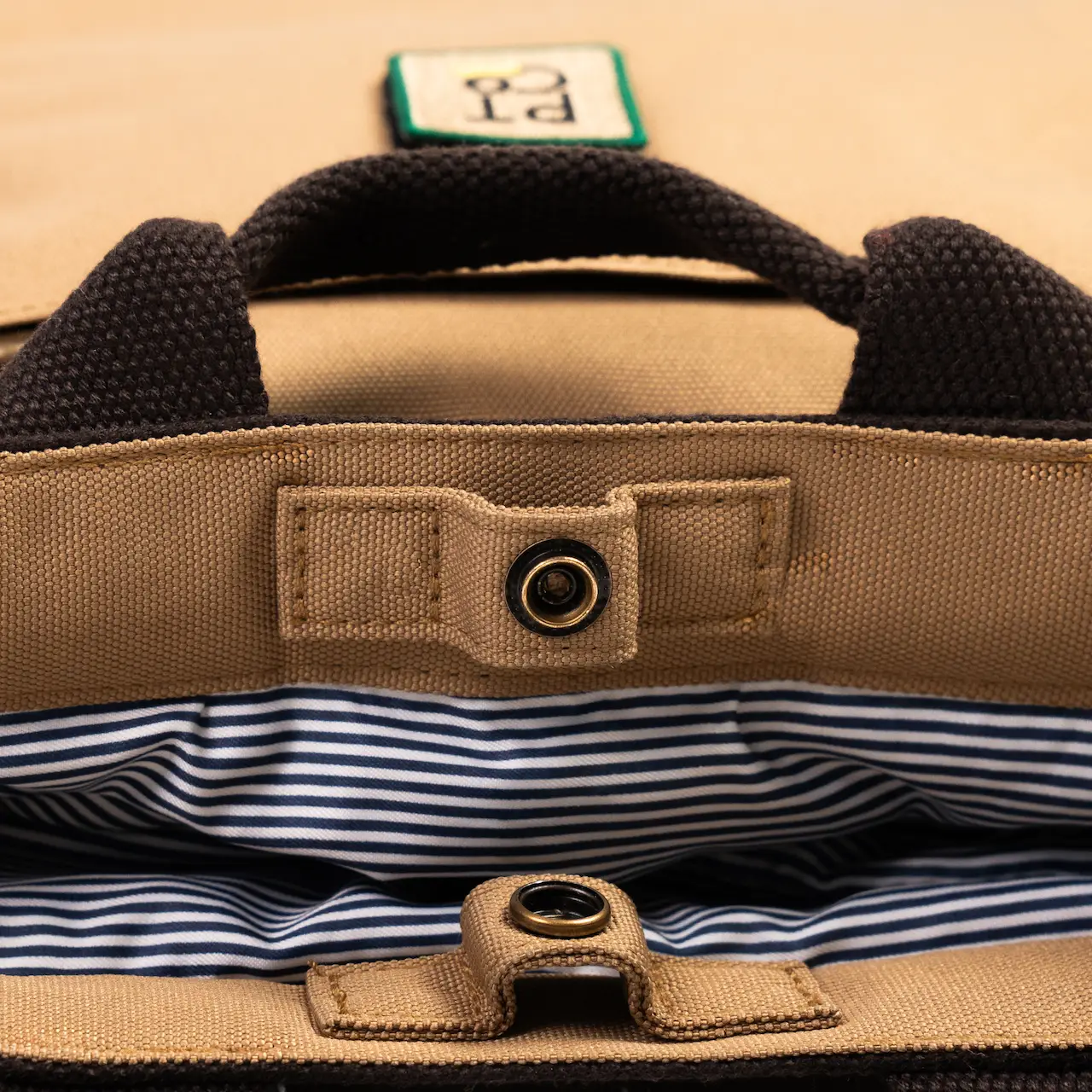 Bricola è la nuance che incarna la Venezia più autentica: il legno stagionato dei pali lagunari, i bagliori dorati dei canali al tramonto e la calma sospesa del mare che incontra la città. Realizzata in resistente poliestere di alta qualità, questa versione Classic coniuga linee essenziali e funzionalità in un accessorio leggero ma capiente, ideale sia per la routine lavorativa che per le fughe del weekend. L’ampio scomparto principale e le tasche multifunzione offrono un’organizzazione intuitiva, mentre i dettagli a contrasto e il patch frontale intercambiabile aggiungono un tocco di stile personalizzabile. Una borsa dalla calda eleganza, pronta ad accompagnarti ovunque con l’inconfondibile solidità di una PTBag .